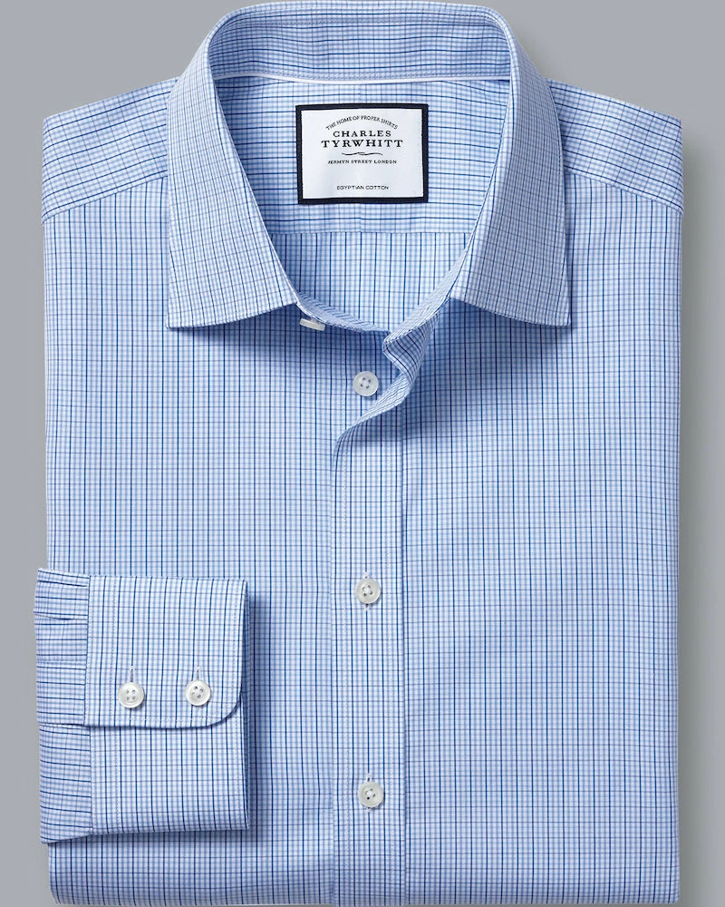 Outlet ๐งจ Oxford & Evergreen Charles Tyrwhitt Semi-Spread Collar ๐ Dress ๐ Shirt, Sky & Blue Gingham โจ