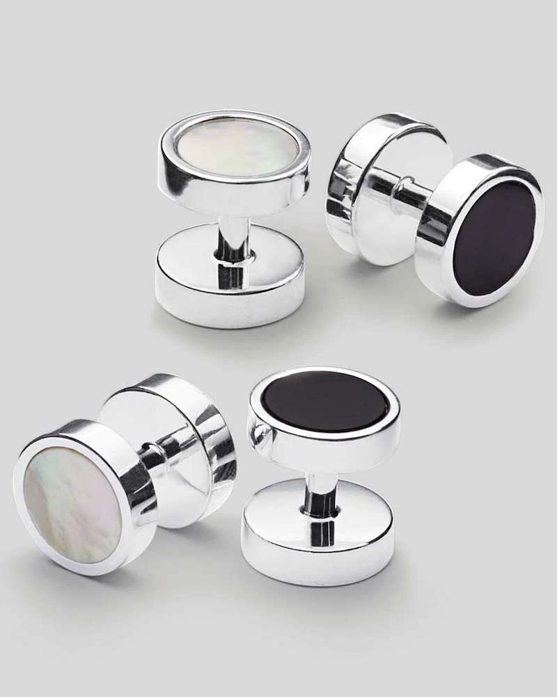 – product: all four studs in thisΒ set are double sided, so they can be wornΒ showing either all black (onyx) or all white (mother-of-pearl) forΒ exceptional versatility